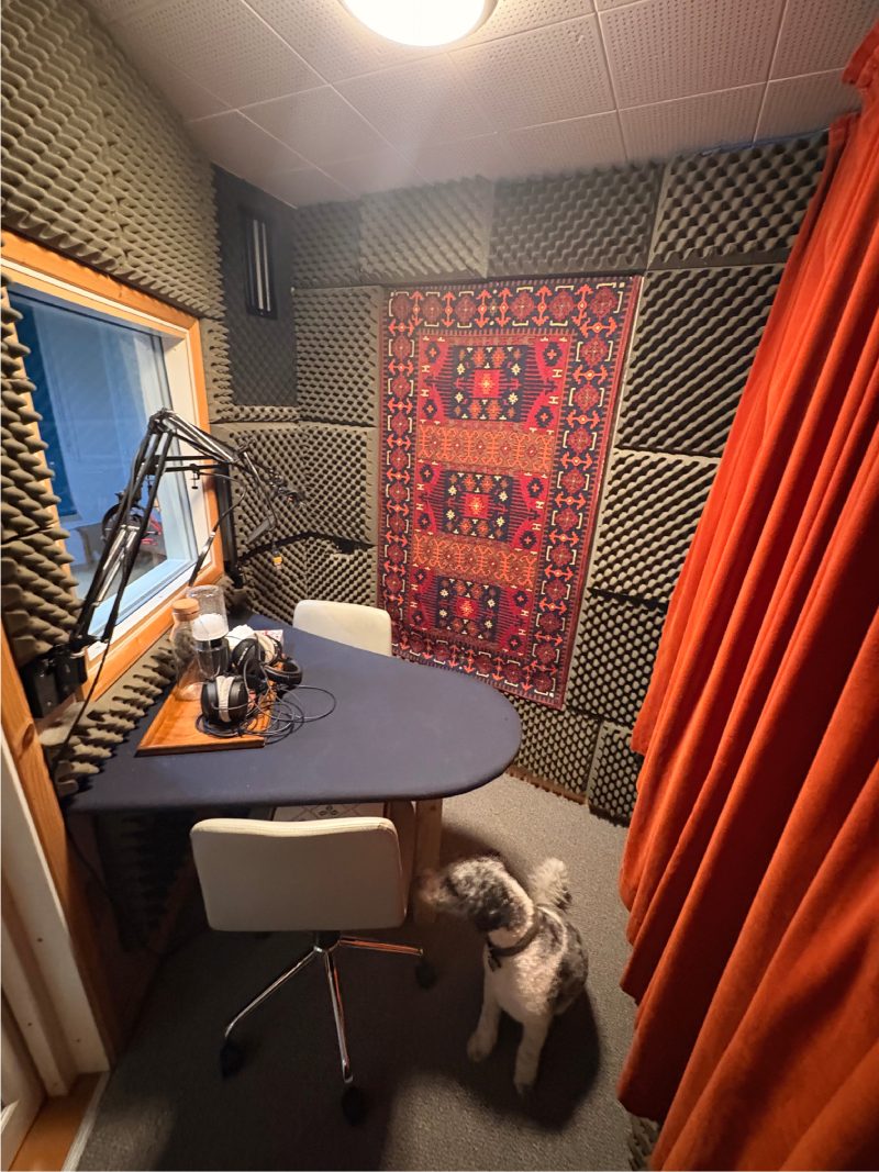 This booth is professionally acoustically-treated for pristine sound, warmed up with a statement rug and enough space to really get comfortable - and if you’re comfortable, you sound better—it’s science (and vibes). Every mic, cable, and chair is exactly where it needs to be to give you the best experience possible.